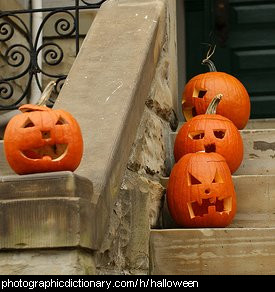 Halloween is a celebration that takes place on October 31st. On Halloween, children go trick-or-treating, collecting sweets and candy around their neighbourhood. Both adults and children like to dress up in costumes of witches and ghosts, and people also carve Jack-o-lanterns out of pumpkins for Halloween.