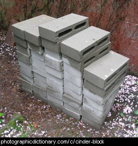 Cinder blocks are fairly lightweight concrete blocks used for building walls. They are usually hollow. Their name varies depending on what is used as an aggregate. Cinder blocks can be called concrete blocks, cement blocks, foundation blocks, breeze blocks (UK), besser blocks (Australia) or clinker blocks. The lighter, lower quality types of cinder blocks use industrial wastes like ash as an aggregate.