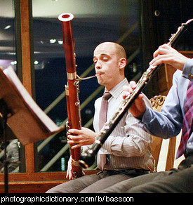 A bassoon is a woodwind instrument. It typically plays in the lower registers, with a warm, dark sound. It is typically played as part of an orchestra or a smaller group that plays classical music.