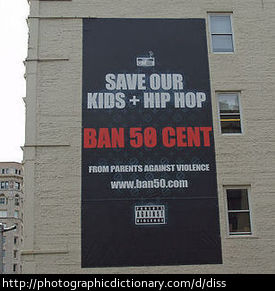 Diss is an abbreviation of the word disrespect. Diss is used as slang, especially among hip hop and graffiti artists. If you diss someone, you have insulted them.