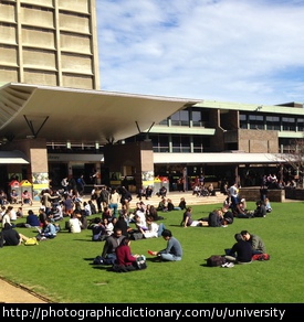 A university is a place where people go, usually after finishing school, to learn more about something so they can get a job, or simply because they love to learn. Universities give you a degree or some other certification when you have finished learning. In some countries, a place where you go for other kinds of tertiary education is known by other names, like a college or a technical school.