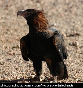The wedge-tailed eagle is the largest eagle in Australia, and one of the largest in the world with a wingspan of around 2.5 metres. It eats any animal that is small enough for it to catch, including rabbits, small kangaroos and lambs.