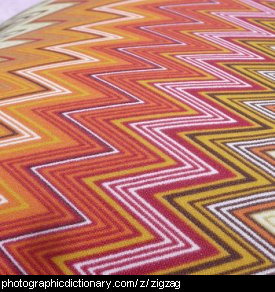 A zigzag is a line that keeps changing direction, backwards and forwards, backwards and forwards, in a regular way. A lot of socks have zigzag patterns on them.
